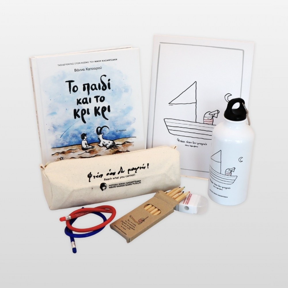 Συσκευασία δώρου για παιδιά με επιλεγμένα προϊόντα, εμπνευσμένα από το έργο του Νίκου Καζαντζάκη "Σ..