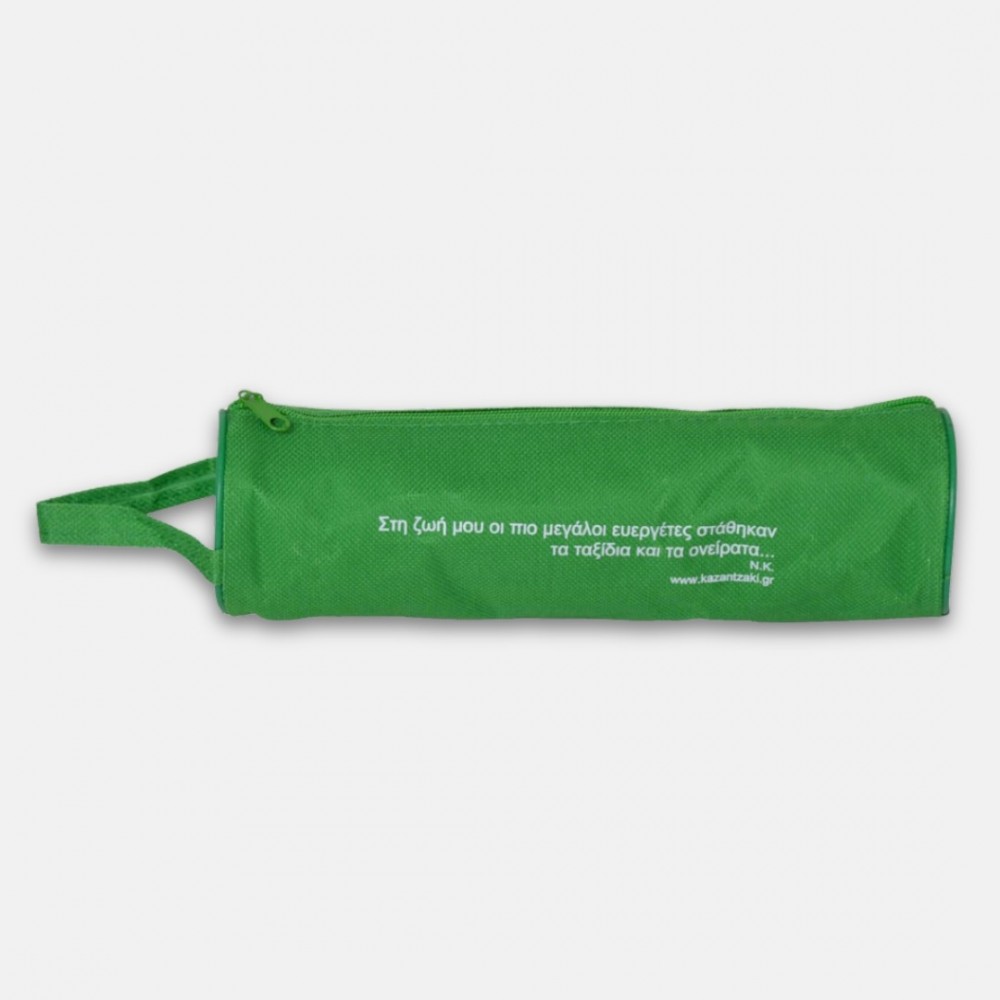 Κασετίνα βαρελάκι με φερμουάρ και χαρακτηριστική φράση από το έργο του Νίκου Καζαντζάκη |