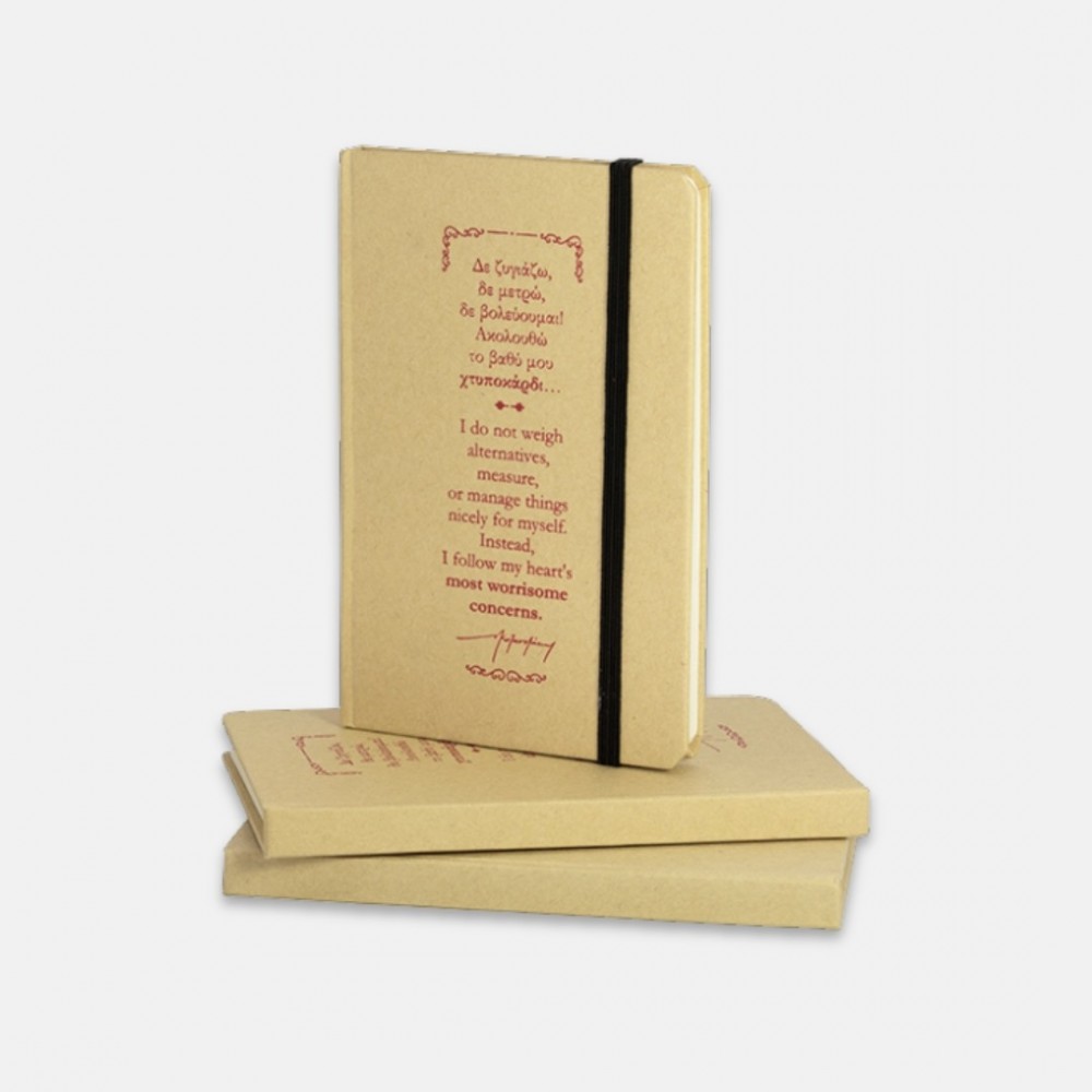 Οικολογικό σημειωματάριο με λάστιχο και χαρακτηριστικό απόφθεγμα από το έργο του Ν. Καζαντζάκη