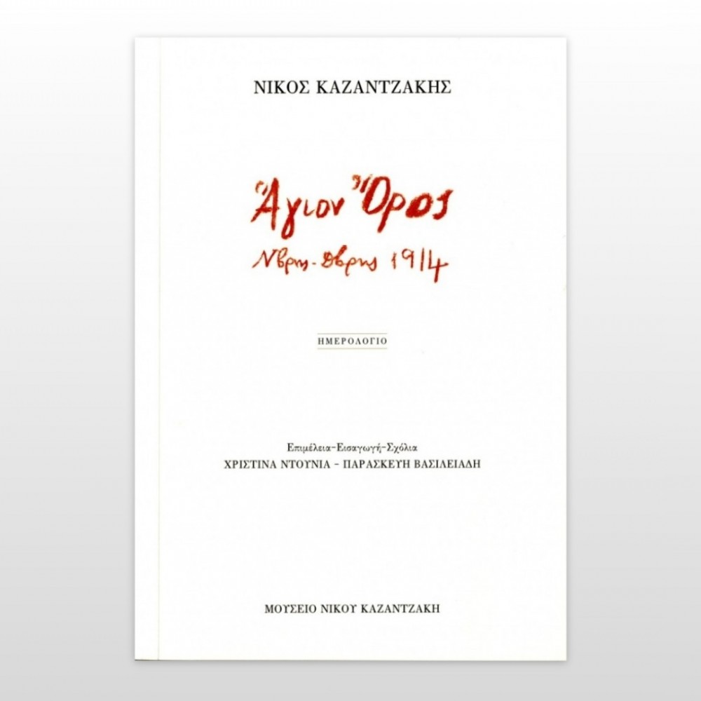 Το πρώτο προσωπικό Ημερολόγιο του Νίκου Καζαντζάκη που εκδίδεται αυτούσιο και περιλαμβάνει σκέψεις και στοχασμούς του από την πρώτη, ιστορική πλέον, περιήγησή του στο Άγιον Όρος με τον Άγγελο Σικελιανό στα τέλη του 1914. Το χειρόγραφο Ημερολόγιο του 1914 σώζεται στο Αρχείο του Μουσείου Καζαντζάκη και αποτελεί ένα από τα πολύτιμα τεκμήρια των πλούσιων Συλλογών του. Πρόκειται για ένα από τα παλαιότερα σημειωματάρια-ημερολόγια του συγγραφέα, που εκδίδεται στο σύνολό του εκατό και πλέον χρόνια μετά την αρχική δημιουργία του. Μια φιλολογικά επιμελημένη και σχολιασμένη έκδοση που περιλαμβάνει εγγραφές από τις 14 Νοεμβρίου έως και τα Χριστούγεννα του 1914 κυρίως από την επίσκεψη του Νίκου Καζαντζάκη και στις είκοσι Μονές της Αθωνικής Πολιτείας. Μέσα από τις ημερολογιακές εγγραφές του συγγραφέα μπορεί κανείς να παρακολουθήσει στιγμιότυπα του αγιορείτικου τυπικού, να θαυμάσει στιγμές σπάνιας λυρικής έκφρασης του ίδιου αλλά και να παρακολουθήσει «το φιλόδοξο σχέδιο μιας, εν τω γίγνεσθαι, δημιουργικής στρατηγικής». Την έκδοση του κειμένου του Νίκου Καζαντζάκη συμπληρώνει κατατοπιστική εισαγωγή και παράρτημα με επιλεγμένο αρχειακό υλικό. «Ευελπιστούμε ότι ο σημερινός αναγνώστης, διαβάζοντας το ιστορικό αυτό σημειωματάριο, θα νιώσει κάτι από το άρωμα αυτών των θρυλικών ημερών», σημειώνουν χαρακτηριστικά οι επιμελήτριες στην εισαγωγή της έκδοσης.